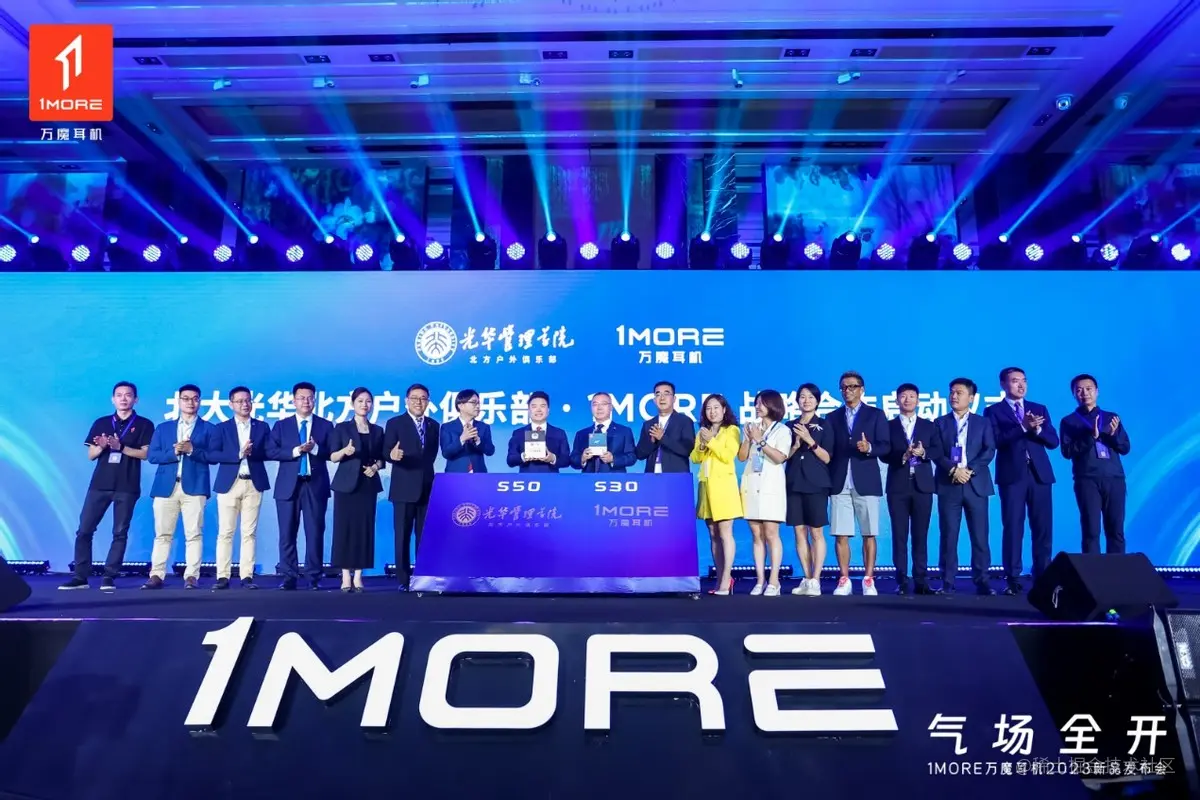 2023年6月28日,1MORE S50新品发布会正式举行,会上,1MORE万魔耳机与北大光华EMBA户外俱乐部签署了战略合作伙伴协议。据了解,在今年年初双方已达成合作共识,随着合作的深入,双方将充分发挥各自的资源和优势,在平台、品牌、业务资源等方面展开全面、深度、持续合作,共同倡导运动健康生活。