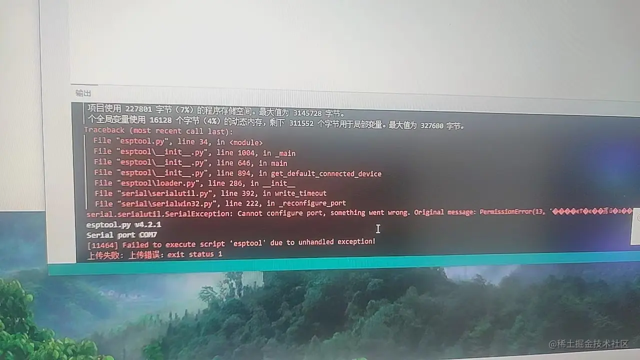 之前的腐蚀了gg了)但是电容的是3v的,esp8266只能检测1v的,所以买了一个新的esp32-cam,正好带个摄像头,间隔5分钟拍个照片,一天下来还能拼接一个延时摄影的效果,奈何这个板子有点毛病,跑不起来,如下图(商家也无法解决)无奈退货(