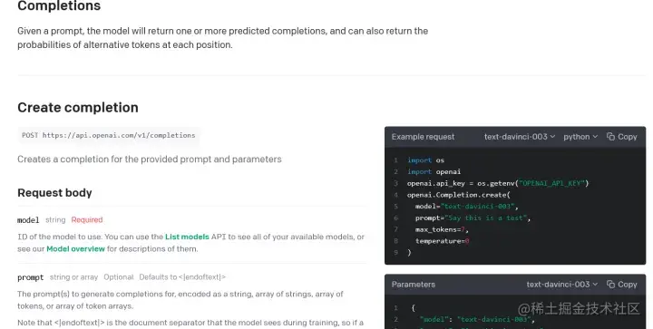 这就是OpenAI官方提供的API接口介绍了。我们逐个看一下: