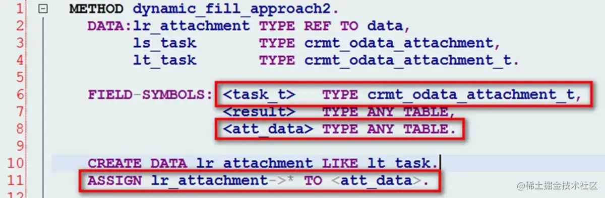 - 其目的是line 23用来接真实的attachment数据,然后line 24写回到result container里去。 注意这里line 24的两个field symbol都是完全generic的,而且赋值在LOOP里完成,所以方法2的泛型处理次数为 1 + task个数。