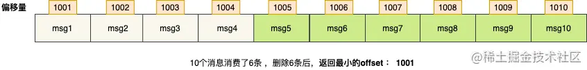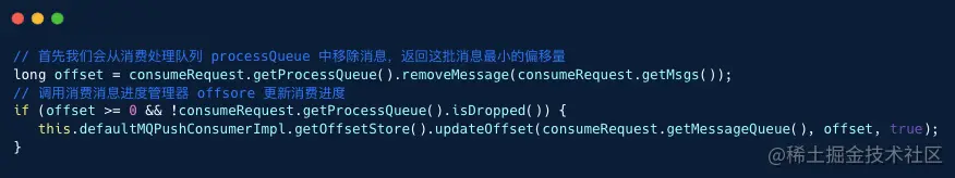 listener.consumeMessage; - 消费完成后,若消费成功,则更新偏移量
