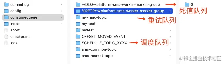 1、消费文件按照主题存储,每个主题下有不同的队列,图中主题 my-mac-topic 有 16 个队列 (0 到 15) ;