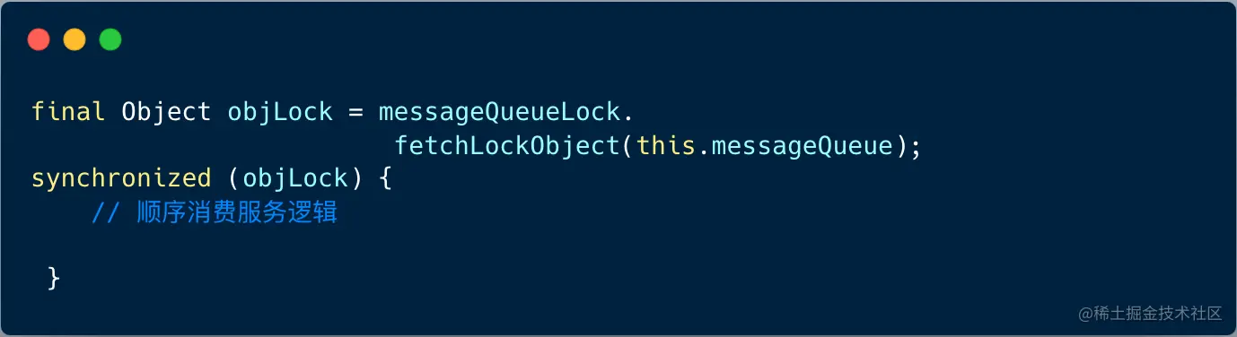 顺序消费也是通过线程池消费的,synchronized 锁用来保证同一时刻对于同一个队列只有一个线程去消费它