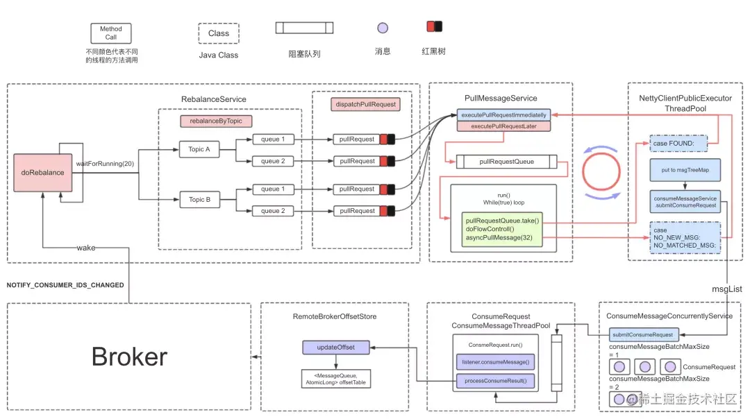 pullRequestQueue中 ; - 拉取完成后,调用消费消息服务