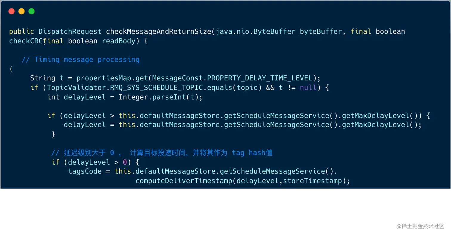 回顾了延迟消息的机制,消费消息失败后,消费者实例会通过 CONSUMER_SEND_MSG_BACK 请求,将失败消息发回到 Broker 端。
