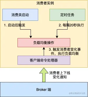 - 消费者上下线,Broker 端通知消费者触发负载均衡。