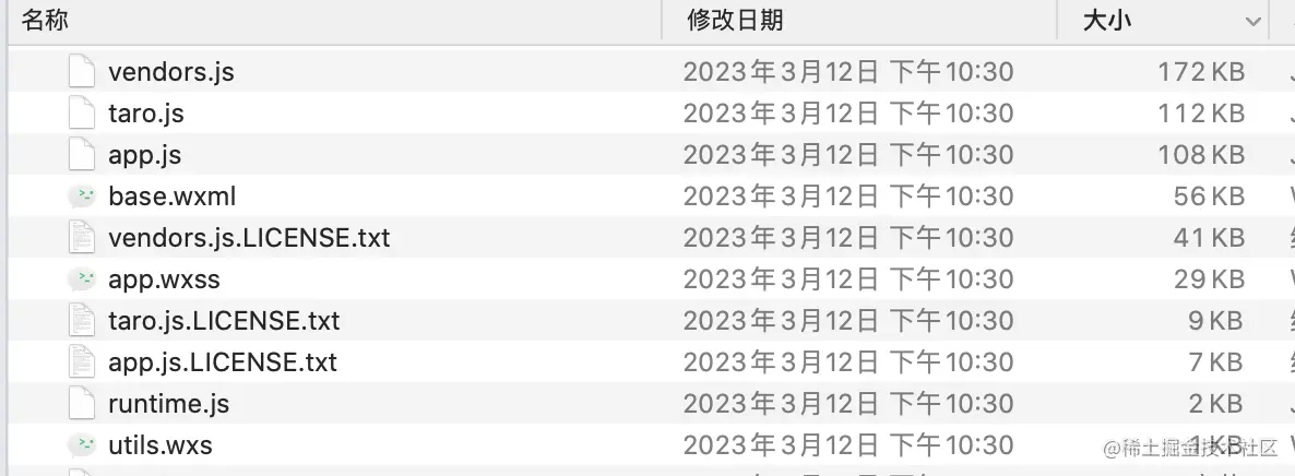 •vendors.js: node_modules 除 Taro 外的公共依赖,查看vendors.js.LICENSE.txt文件分析包括哪些文件