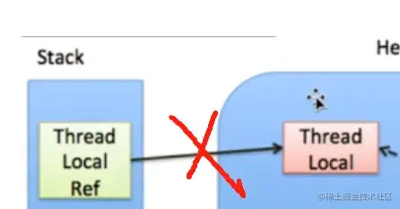 2、这里是弱应用,一GC(垃圾回收),也断了。之所以是弱应用,是有几率被垃圾回收,然后被ThreadLocalMap发现key没有引用,从而将这个key value 回收。如果是强引用就完犊子了。就算ThreadLocal Ref不引用他,Key对他的引用还是亘古不灭,所以这个弱引用做得真好,给这条狗栓两个绳,一强一弱。