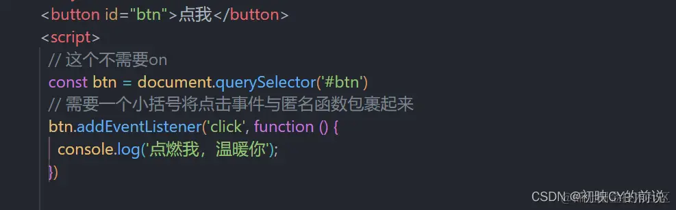 - 事件处理的函数:要做什么事 一般是一个匿名函数函数