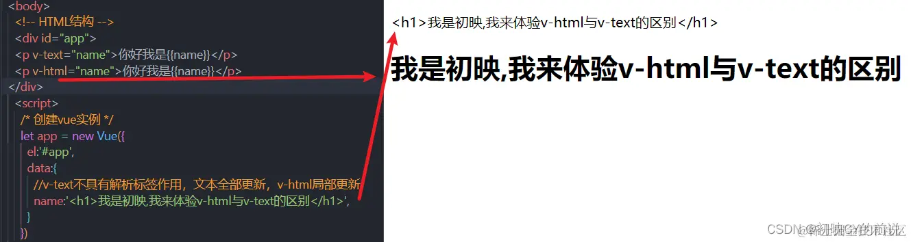 该指令同v-text指令类似,也具有覆盖标签文本作用。