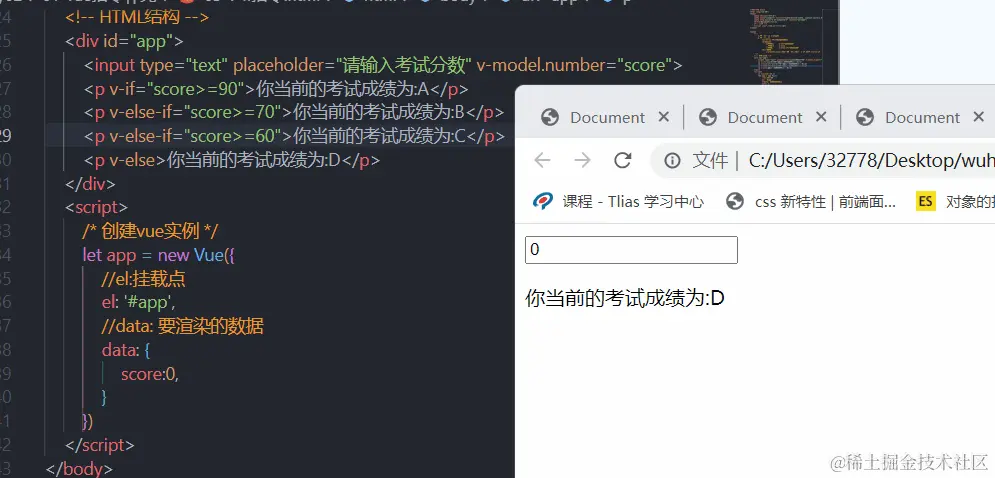 语法格式:v-if="判断条件"