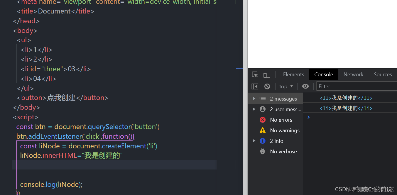 当我点击 点我创建 的时候,控制台可看到输出的内容