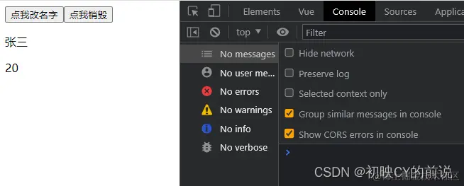 【再次验证】这是我们直接修改data中的数据,当我们点击 “点我改名字”这个按钮的时候也会出现