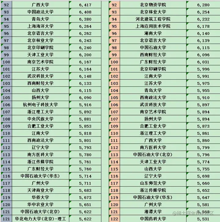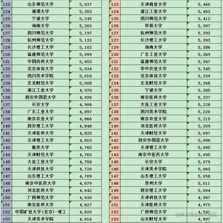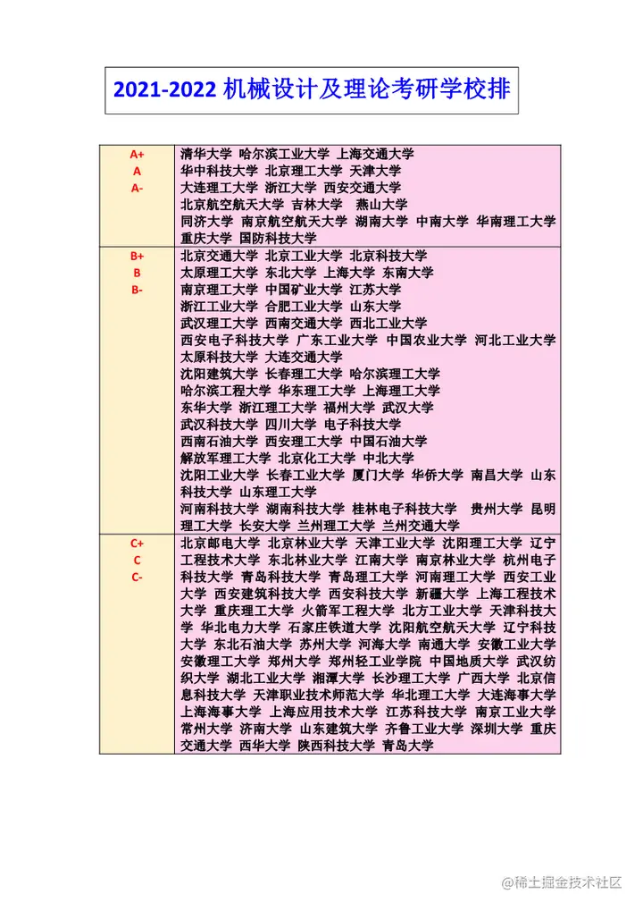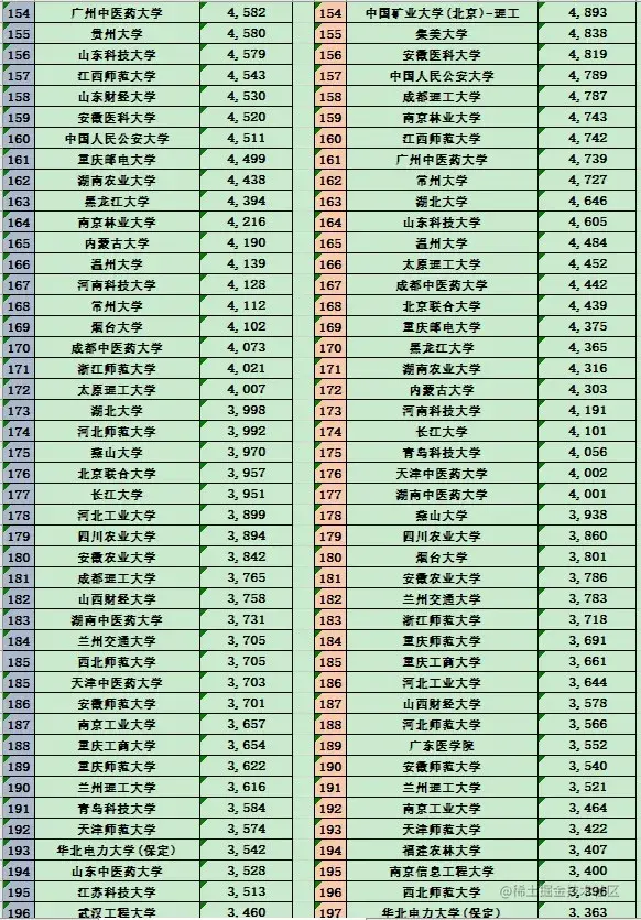 | 第三档: | 中北大学 西安交通大学 南昌大学西南财经大学 浙江大学 西南交通大学天津大学 华东理工大学 福州大学上海外国语大学 中央民族大学 华中科技大学辽宁大学 河北工业大学 华南理工大学 |