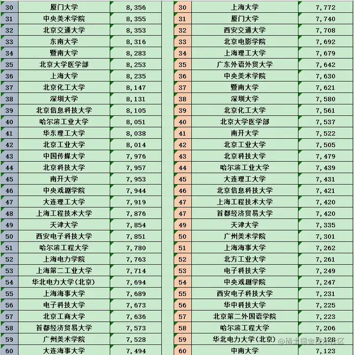 北大倒数第一,复旦倒数第二