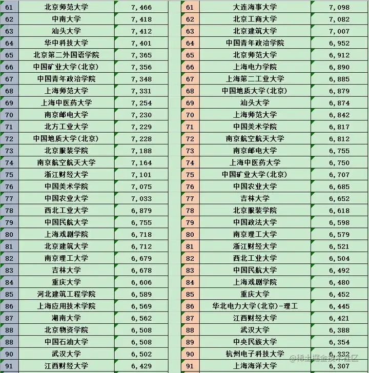 | 第二档: | 对外经贸大学 东华大学 厦门大学北京科技大学 东北师范大学社科院哈尔滨工业大学 中南大学 大连理工大学中国海洋大学 江西财经大学 中南财经政法大学北京师范大学 国防科技大学 |