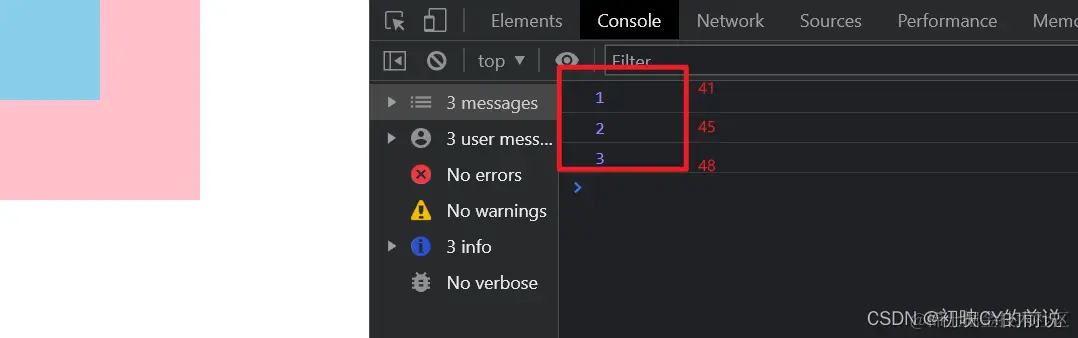 注意看我的文件结构:(当我点击蓝色盒子的时候控制台输出如下)