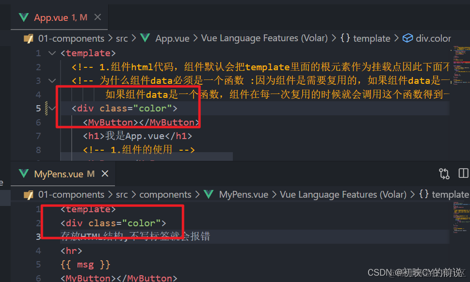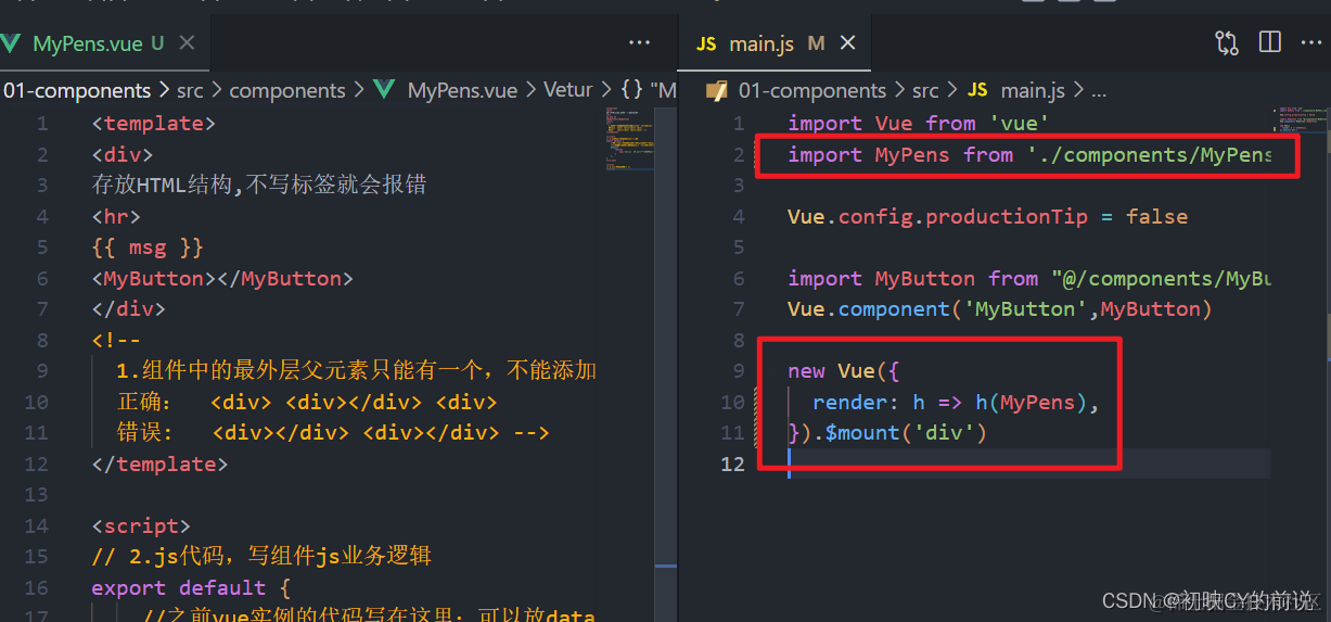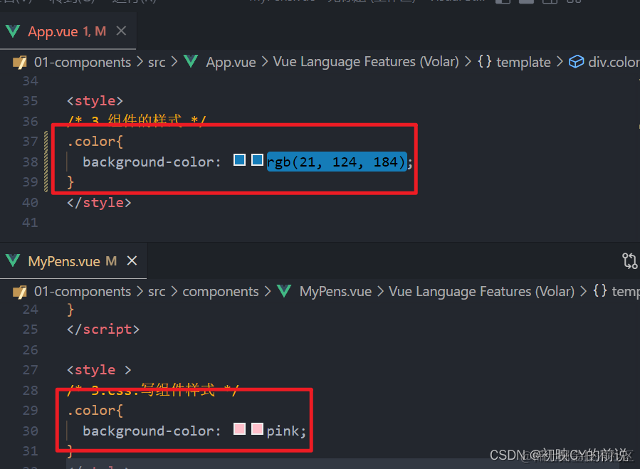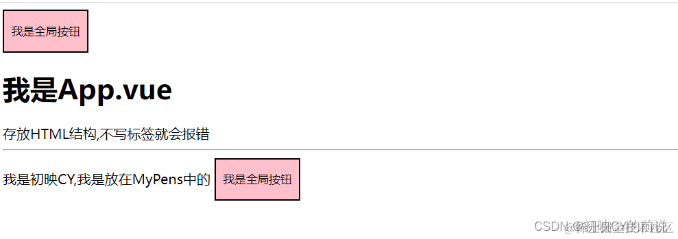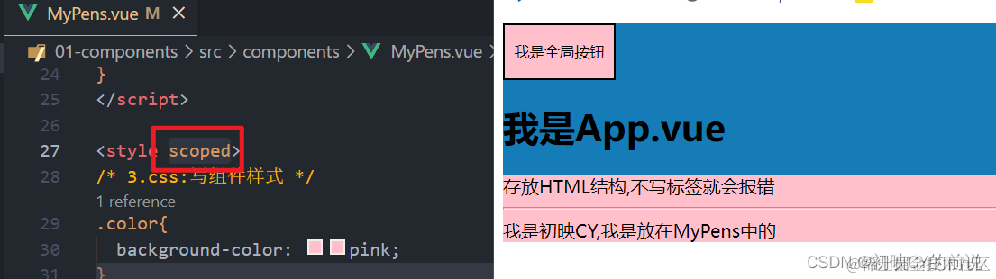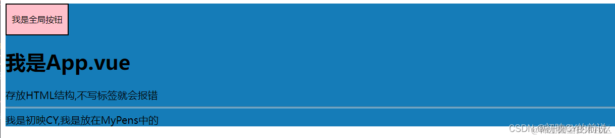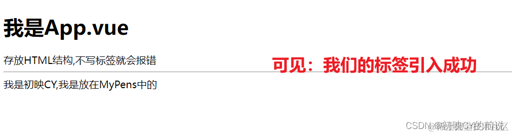 上述我们写了两个.vue分别为App.vue与MyPens.vue,我们在App.vue中引入我们MyPens.vue中的文件。
