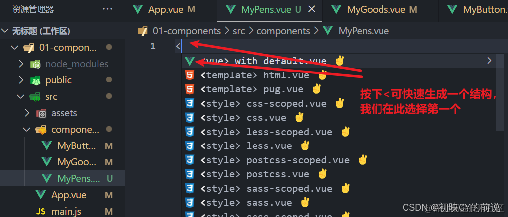 小提示 : 快速生成组件三大部分的快捷键:<vue>