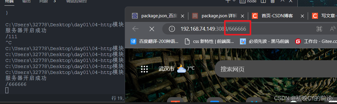 之后进浏览器在地址栏输入,可查看到服务器接受到了666666