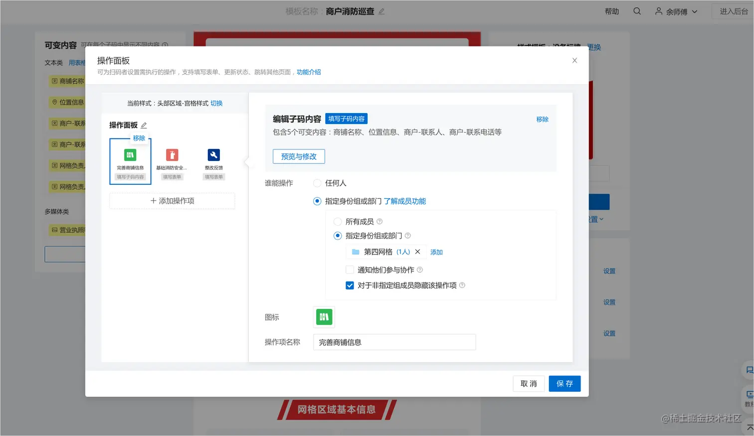 可指定仅网格员进行操作,勾选对非指定成员隐藏该操作项。