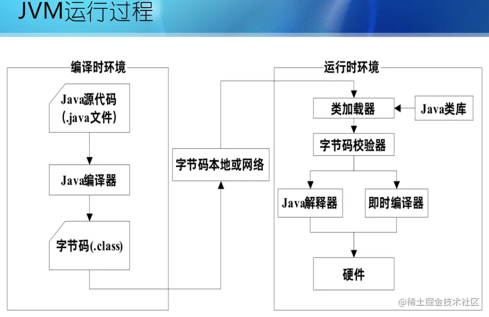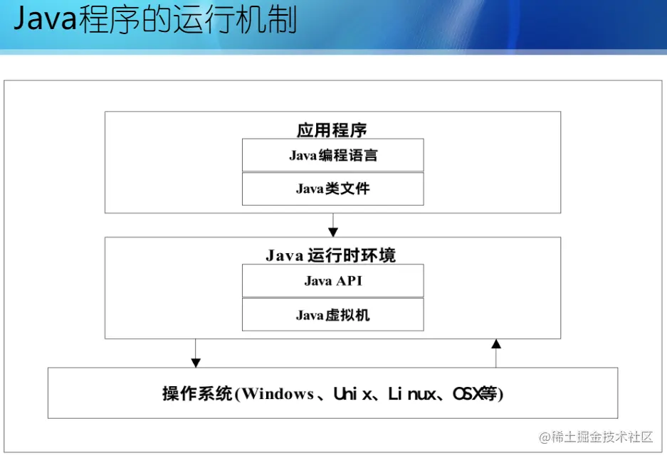 虚拟机可理解成一个以字节码为机器指令的 CPU,通过模拟真实机器来运行 java 程序。对于不同运行平台,有不同的虚拟机。java 虚拟机(Java Virtual Machine 即 JVM)机制屏蔽了底层运行平台的差别,即 JVM 在执行字节码时,把字节码解释成具体平台上的机器指令执行,所以实现了 “一次编译,随处运行”。