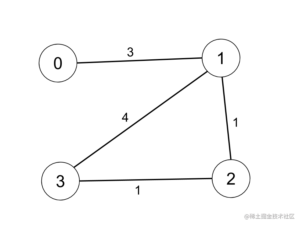 输入: n = 4, edges = [[0,1,3],[1,2,1],[1,3,4],[2,3,1]], distanceThreshold = 4