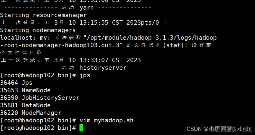 ssh hadoop102 "/opt/module/hadoop-3.1.3/bin/mapred --daemon start historyserver"