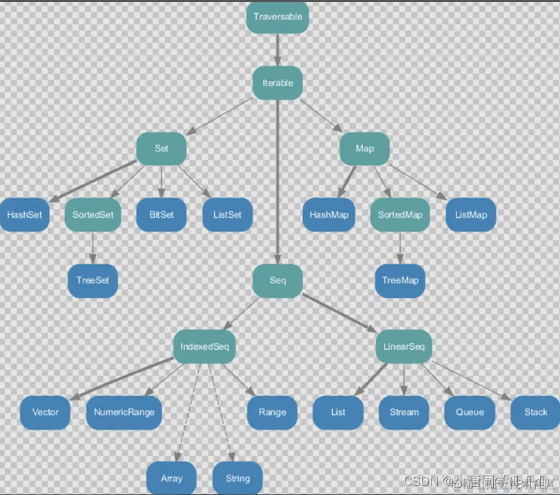 1) Scala 的集合有三大类:序列 Seq 、集 Set 、映射 Map ,所有的集合都扩展自 Iterable