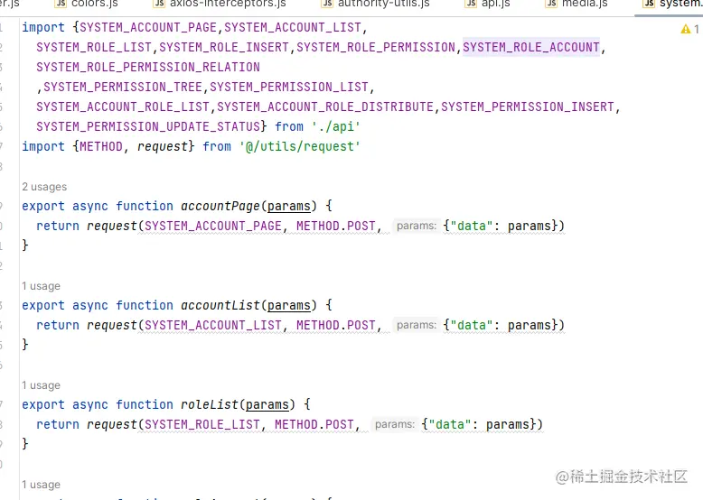 system.js(自定义) 编写我们所有的GET,POST请求。底层使用axios来进行调用