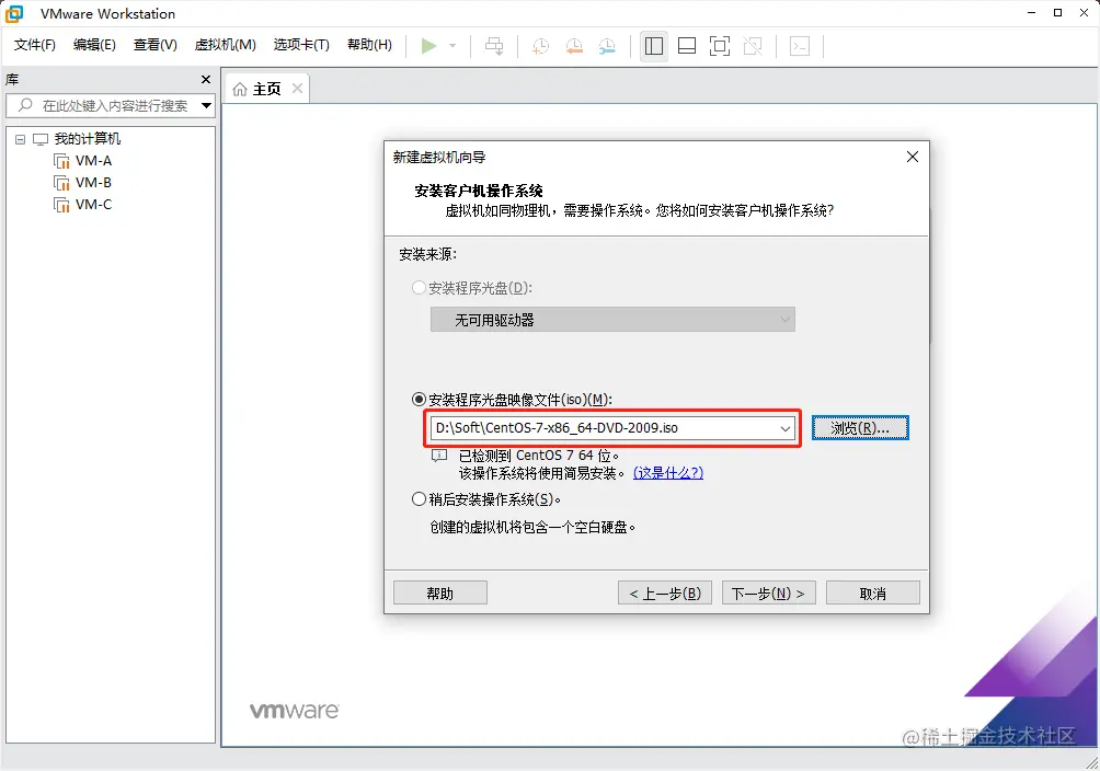 文件 → 新建虚拟机 → 类型选择【典型】→ 选择上面下载到本地的 iso 镜像