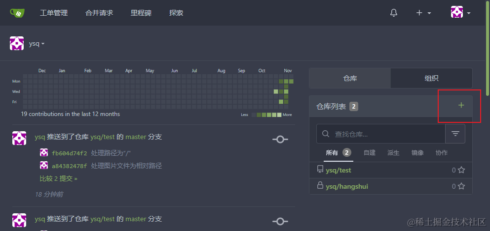 +号,创建一个远程仓库 -