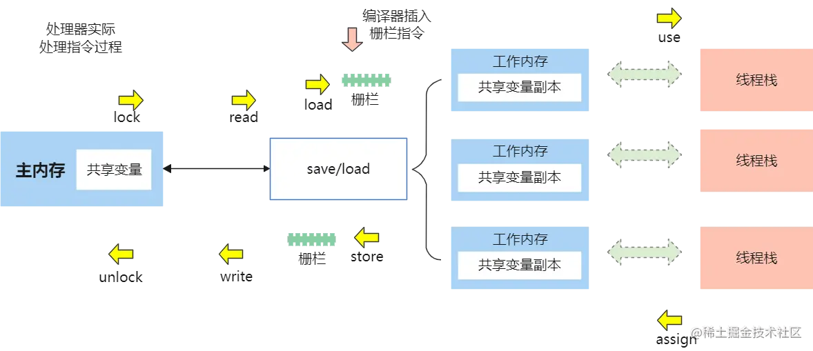 涉及到了读(从主内存中获取,并放置到当前方法栈) 和 写(将当前方法栈中的值回写至主内存) 的指令执行
