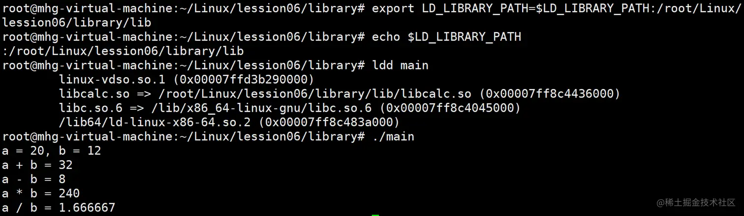 export LD_LIBRARY_PATH=$LD_LIBRARY_PATH:/root/Linux/lession06/library/lib