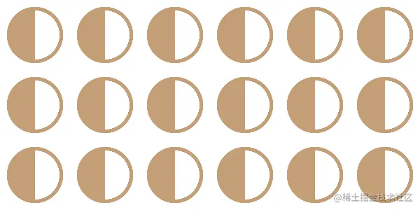 这是另一个非直观的模式,可能会让很多人感到困惑。你可能会把它看作是一个半满的圆圈,但实际上它是两个半圆的组合,如下所示: