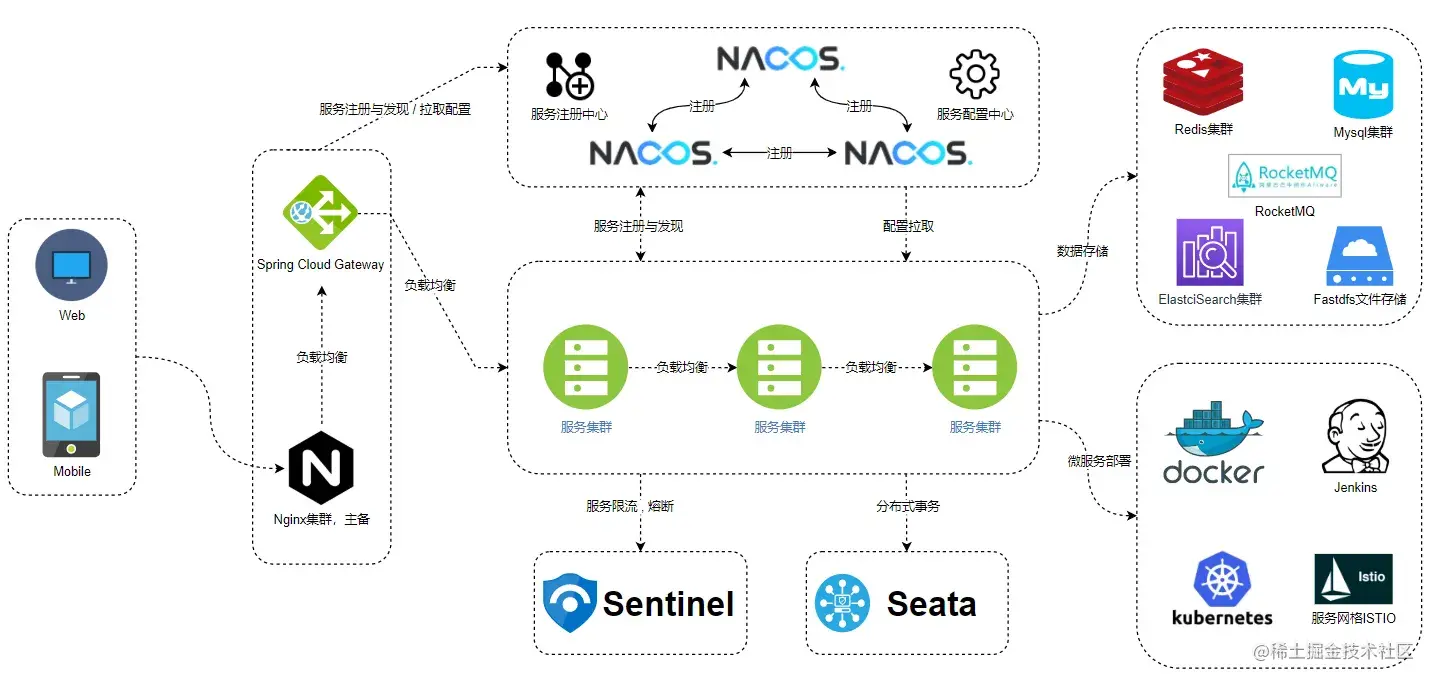 - Sentinel:把流量作为切入点,从流量控制、熔断降级、系统负载保护等多个维度保护服务的稳定性。