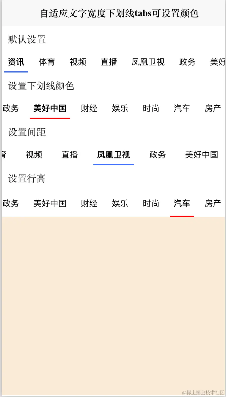 前端vue自适应文字宽度下划线tabs可设置下划线颜色,可根据选中位置自动滑动,