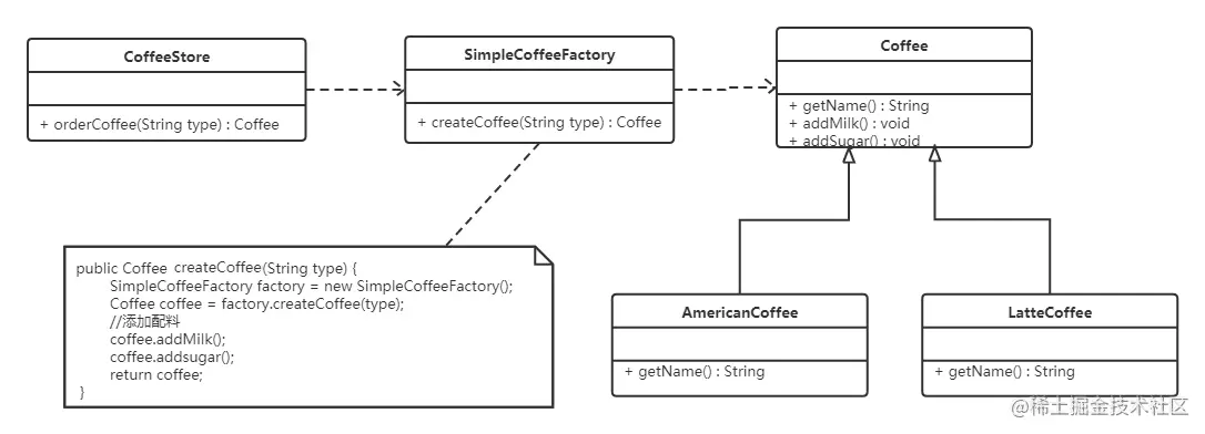 //进一步解耦,只需要SimpleCoffeeFactory.createCoffee 即可