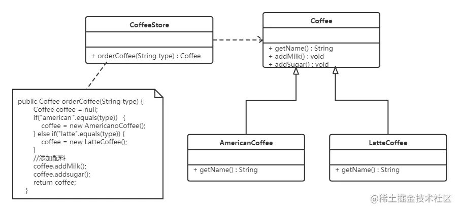 后期如果再加新品种的咖啡,我们势必要需求修改SimpleCoffeeFactory的代码,违反了开闭原则。工厂类的客户端可能有很多,比如创建美团外卖等,这样只需要修改工厂类的代码,省去其他的修改操作。