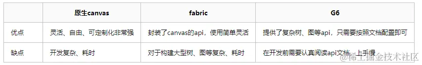 - 技术背景:在开发之前考虑了三种方案,原生canvas、fabric以及G6,三种方案各有优劣势