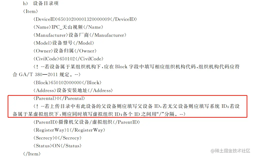 可以看到,在EasyCVR请求下级通道时,设备除必要的deviceID外,还携带了Parental且值为1 。在《公共安全视频监控联网系统信息传输、交换、控制技术要求》中,有对Parental的明确定义,如下: