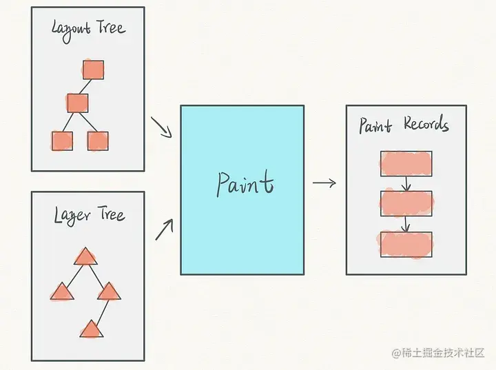 输入布局树(layout tree)和图层树(layer tree),输出绘制记录(paint records)。