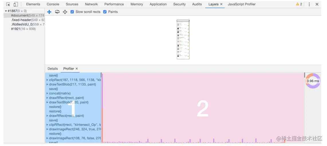 (可以打开“开发者工具”的“Layers”标签,选择“document”层,来实际体验下绘制列表)