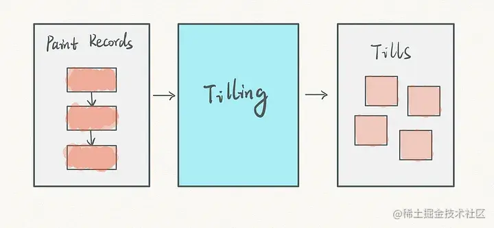 输入是绘制记录(paint records)和图层(layers),输出是图块 (tiles) 。