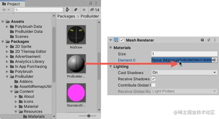 - 单击 Inspector 中属性右侧的小圆圈图标,以打开 Object Picker 窗口。