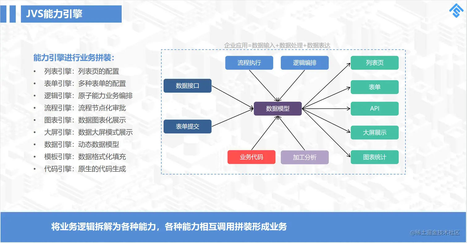 3、由于前端没有、后端可以通过逻辑引擎、流程引擎、配置CRUD之外的业务,在业务功能配置无法实现的时候 再通过代码编写作为补充。