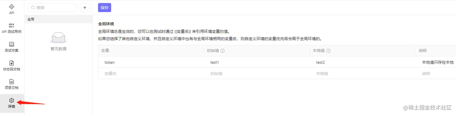 对项目内全局有效,但优先级低于环境变量。即若全局变量和环境变量的变量名均为token,则取环境变量值
