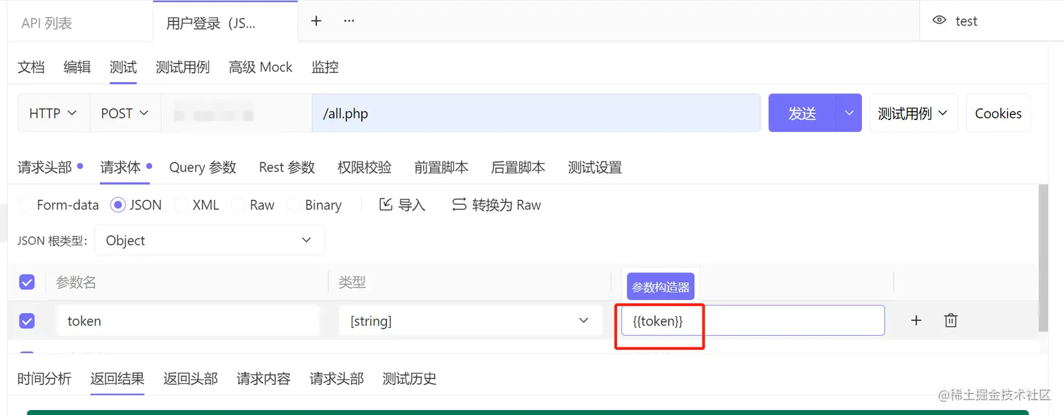 在请求体界面的表格中使用 {{token}} 即可引用该token值,即123456。