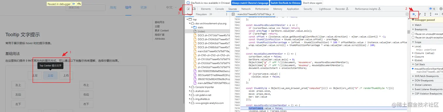 例子:tooltip组件的提示元素查看。