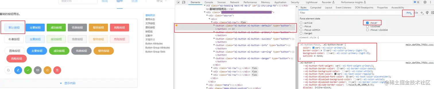 例子:button按钮的hover样式变化。